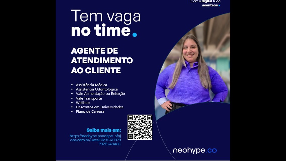 Na Neohype.co, a tecnologia é só o começo. O que transforma de verdade é a inteligência das pessoas por trás dela. Se você quer criar com propósito e impacto, confira nossas vagas.